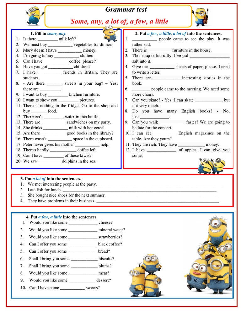 Some Any A Lot Of A Few A Little Grammar Test Lunch Food And Drink