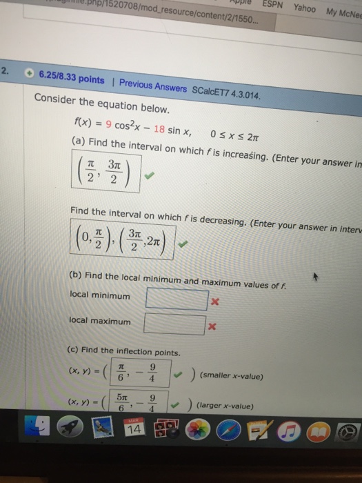 Consider The Equation Below F X 9 Cos 2x 18 Sin X 0 Leq X Leq 2 Pi Find The Interval On Which F Is Increasing And Decreasing
