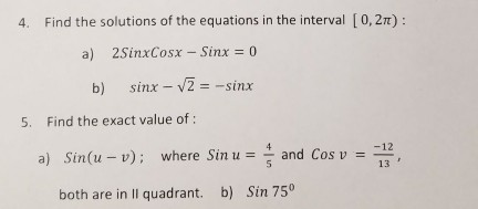 Solved Find The Solutions Of The Equations In The Interva Chegg Com