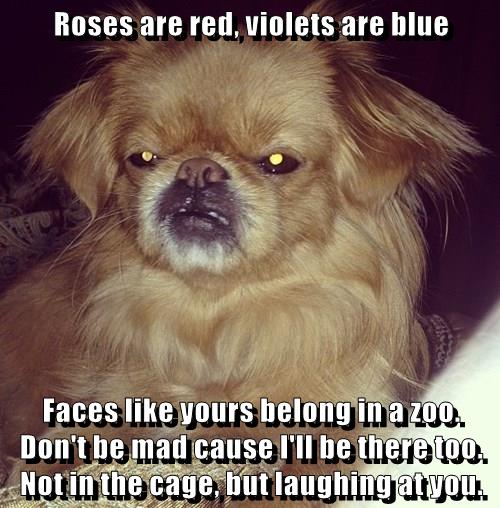 Roses Are Red Violets Are Blue Faces Like Yours Belong In A Zoo Don T Be Mad Cause I Ll Be There Too Not In The Cage But Laughing At You I Can