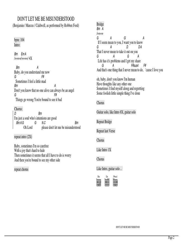 Song Don T Let Me Be Misunderstood By The Animals Song Lyric For Vocal Performance Plus Accompaniment Chords For Ukulele Guitar Banjo Etc