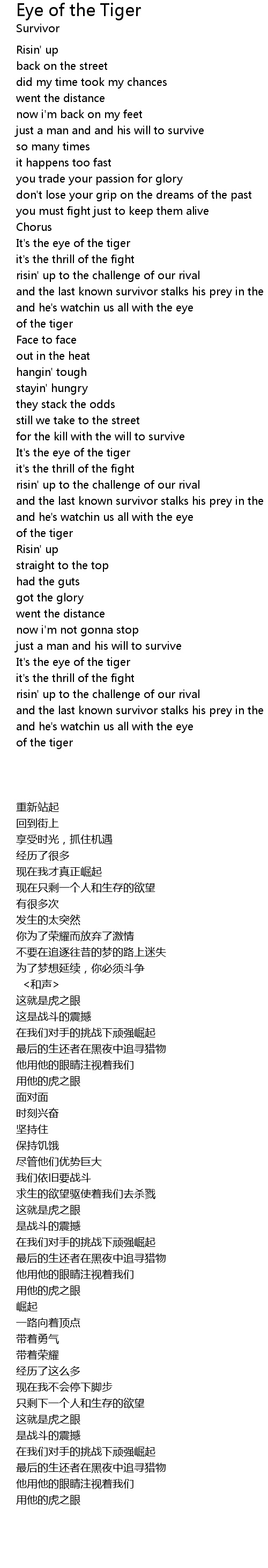 Survivor Eye Of The Tiger Music Lyrics Music Quotes Lyrics