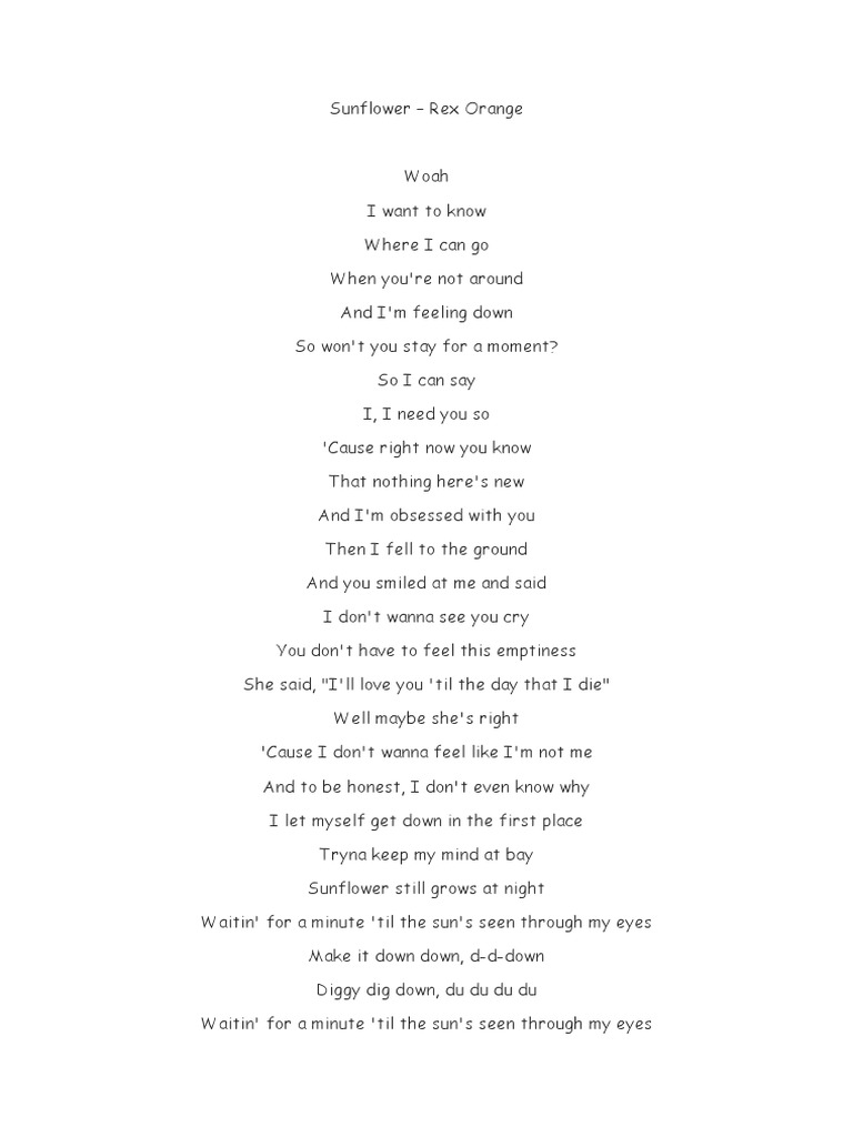 Lyrics Art Sunflower Rex Orange County Facebook