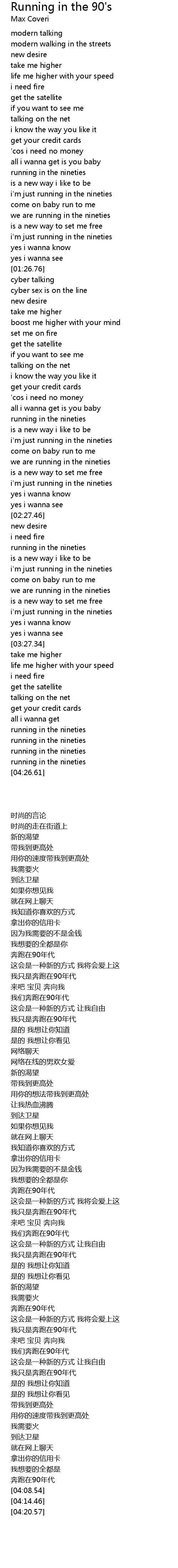Max Coveri Running In The 90s Lyrics Modem Talking Modern Walking In The Streets New Desiretake Me Higher Lift Me Higher With Your Speed I Need Fire Get The Satellite If You
